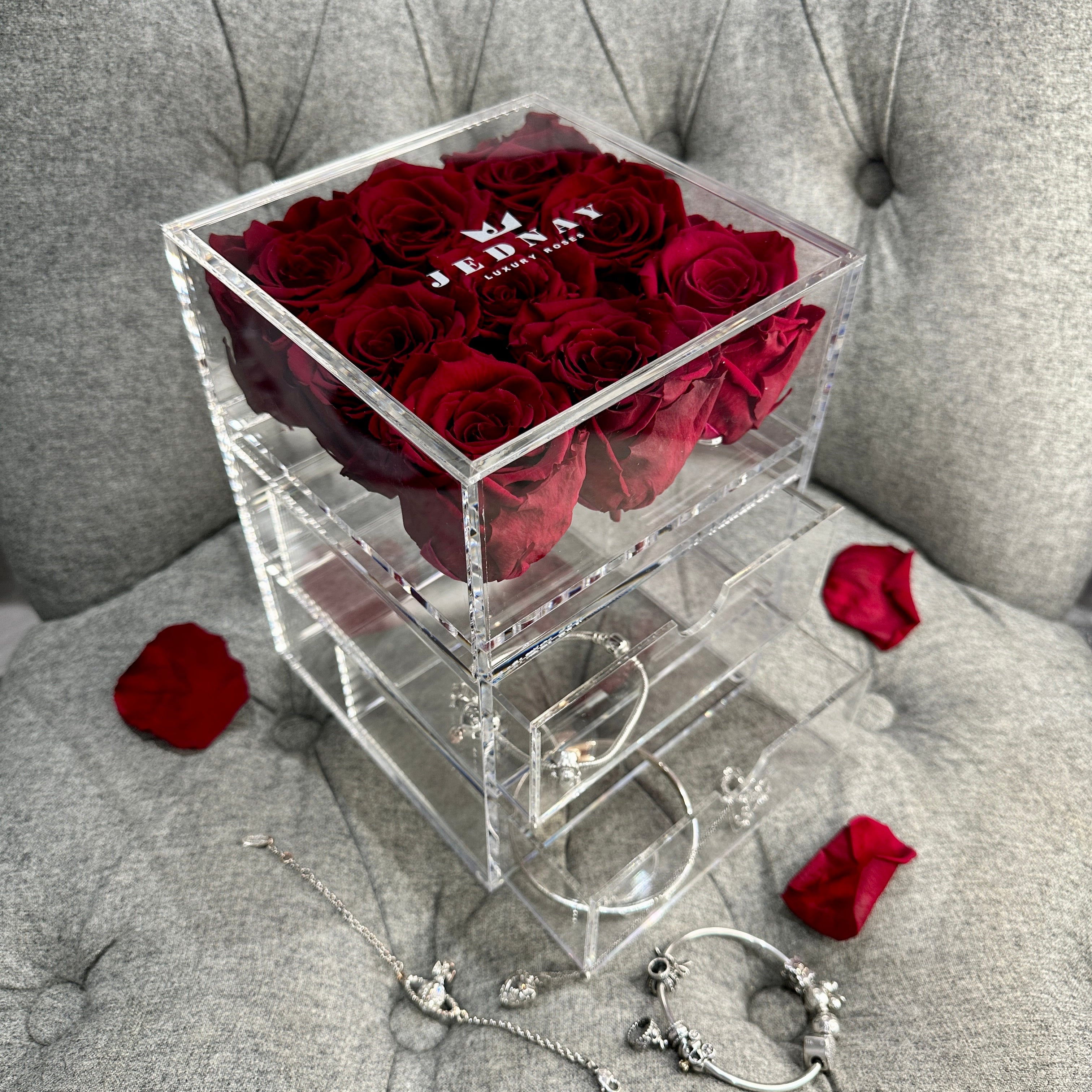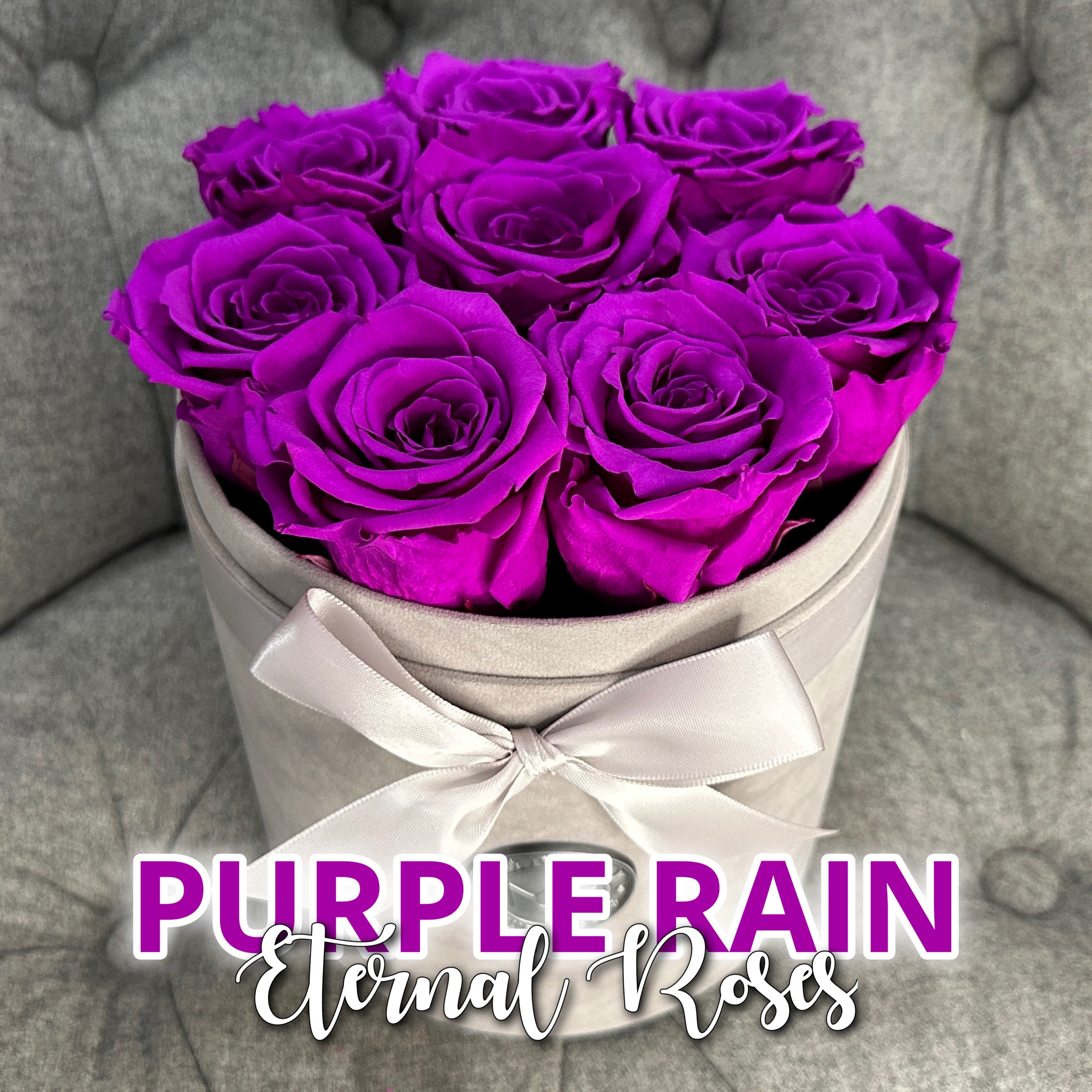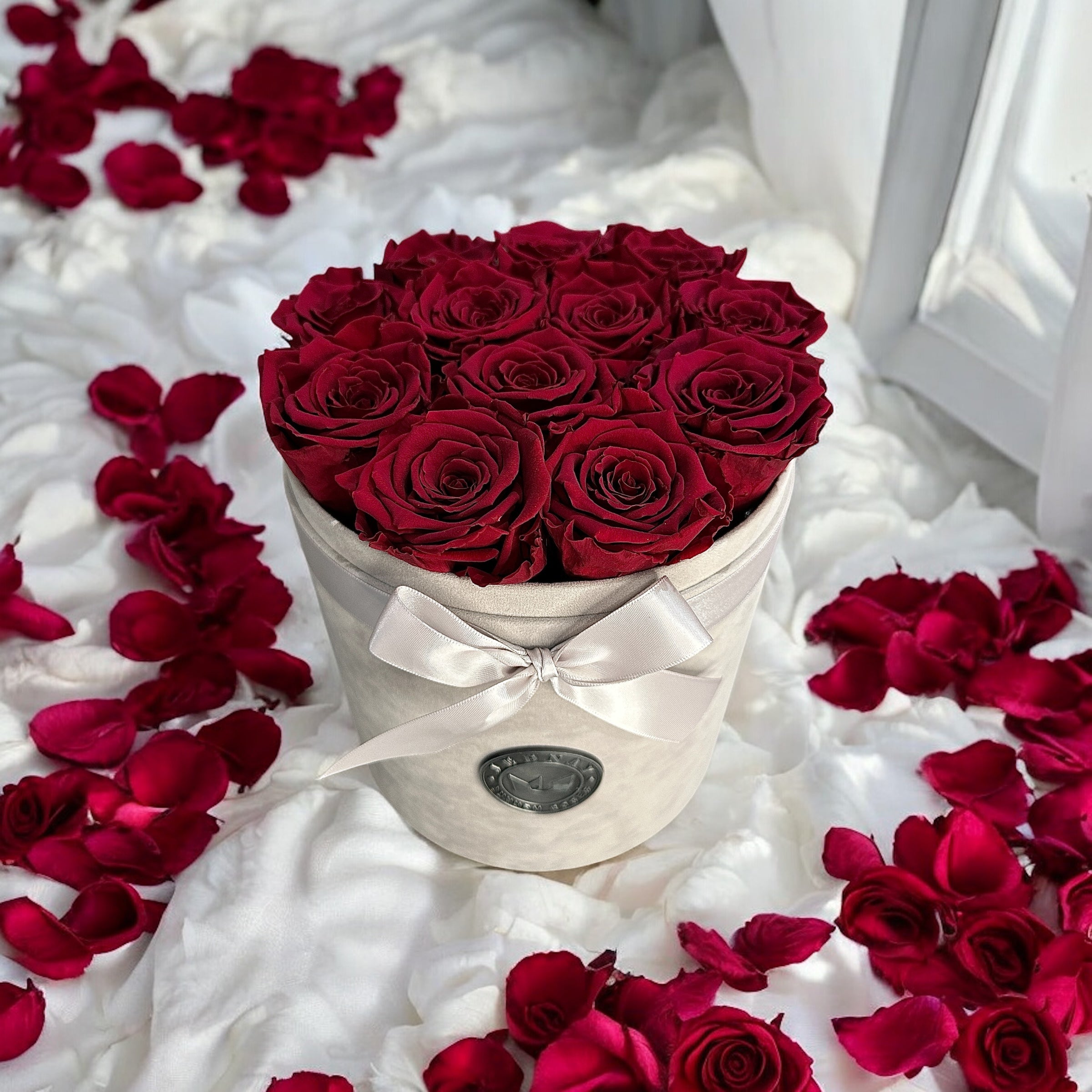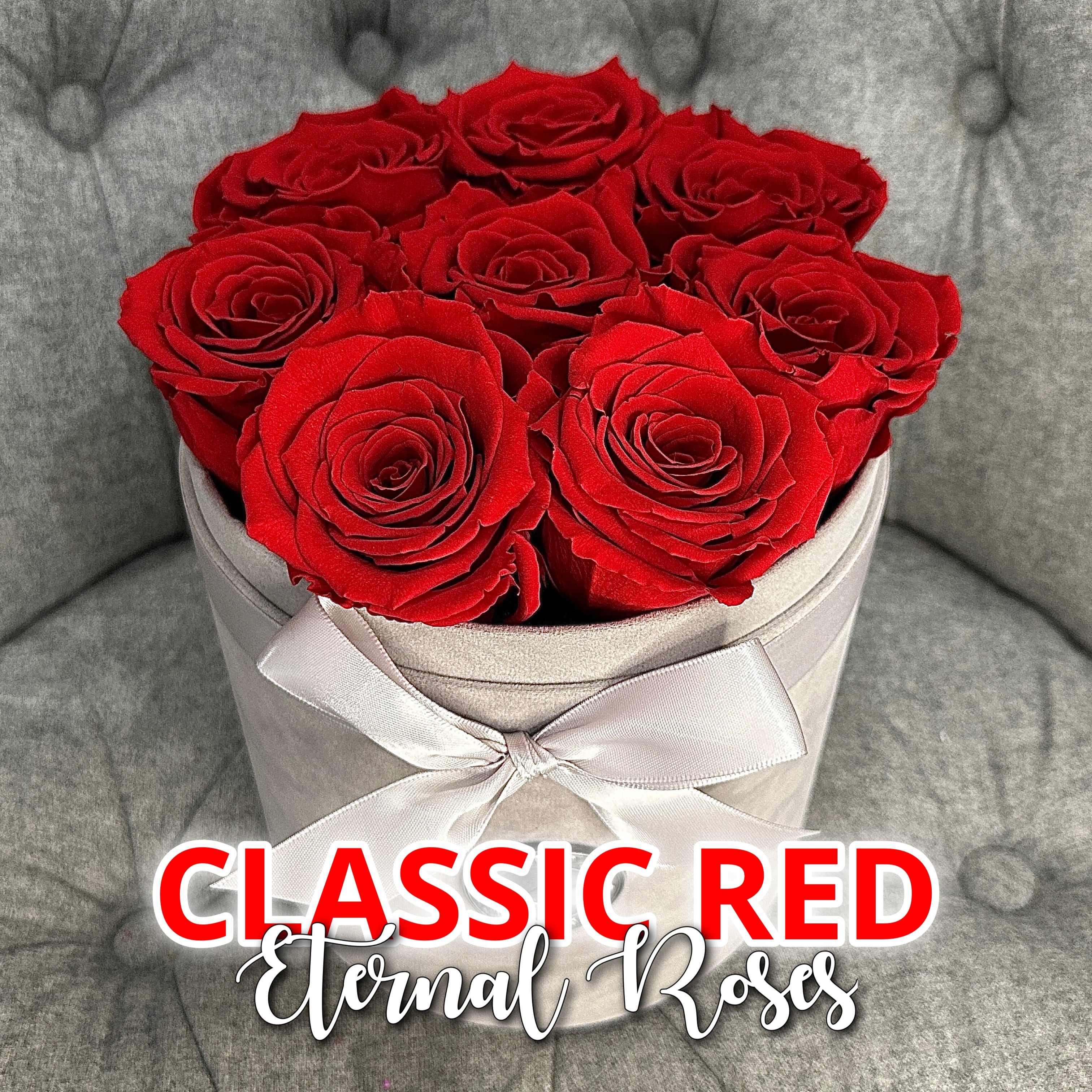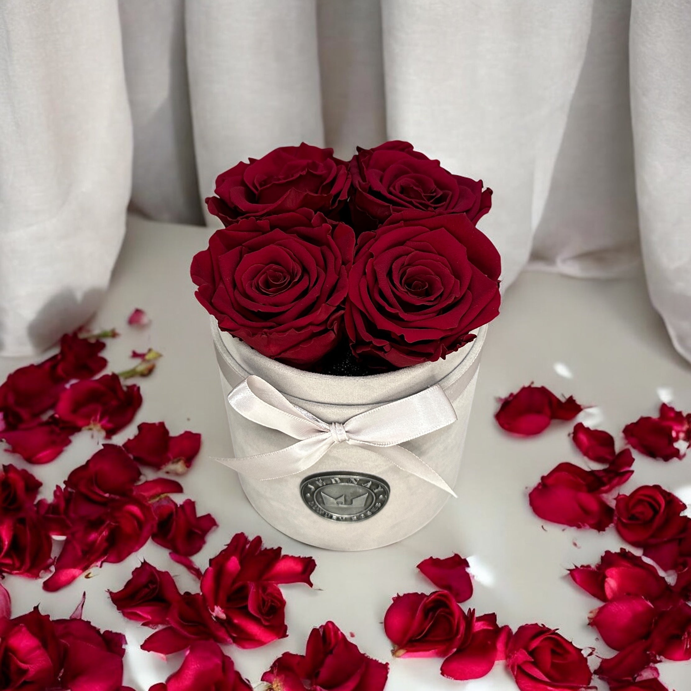THE FOUR | CLASSIC RED ETERNAL ROSES | GREY SUEDE BOX