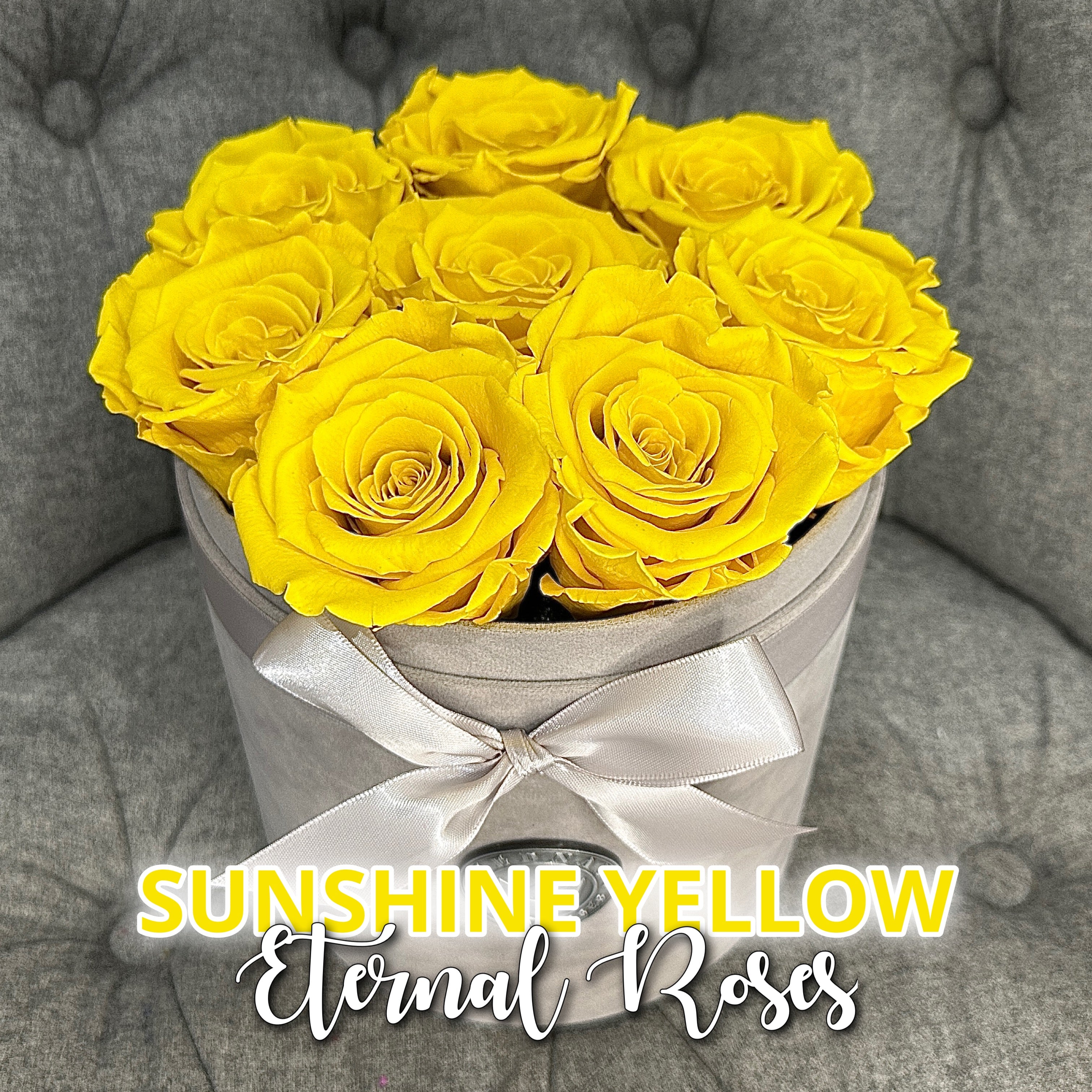 THE FOUR | SUNSHINE YELLOW ETERNAL ROSES | BLACK SUEDE BOX